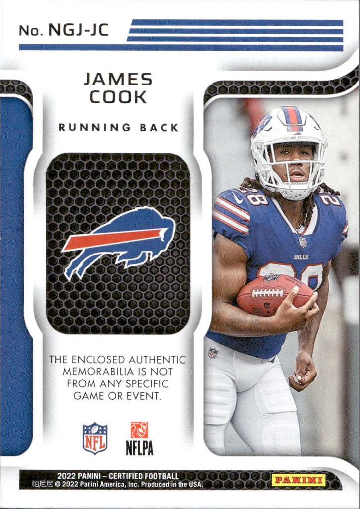 2022 James Cook Panini Certified NEW GENERATION MIRROR BLUE JERSEY PATCH ROOKIE RC 38/99 #NGJ-JC Buffalo Bills