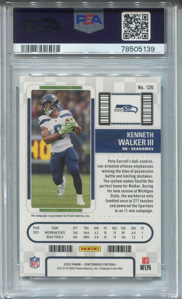 2022 Kenneth Walker III Panini Contenders ROOKIE TICKET AUTO AUTOGRAPH RC PSA 9 #126 Seattle Seahawks 5139