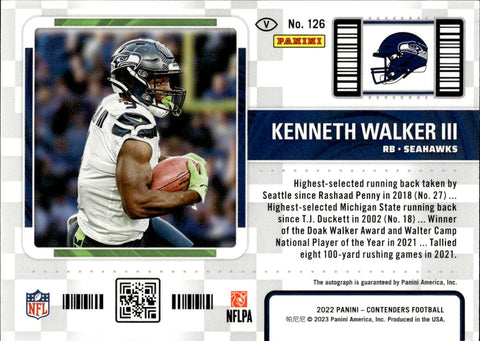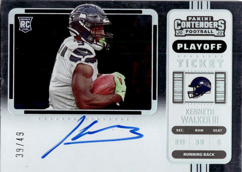 2022 Kenneth Walker III Panini Contenders VARIATION PLAYOFF TICKET ROOKIE AUTO 39/49 AUTOGRAPH RC #126 Seattle Seahawks