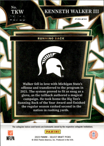 2022 Kenneth Walker III Panini Select Draft Picks TURBOCHARGED GOLD PRIZM ROOKIE RC 2/10 #TKW Michigan State Spartans Seattle Seahawks