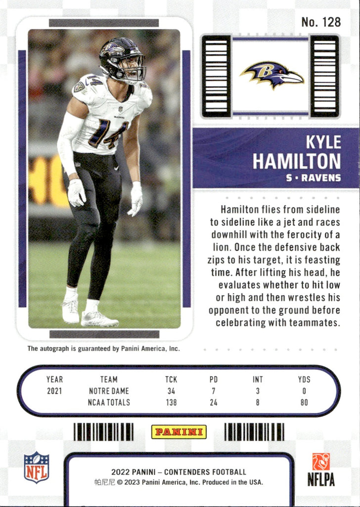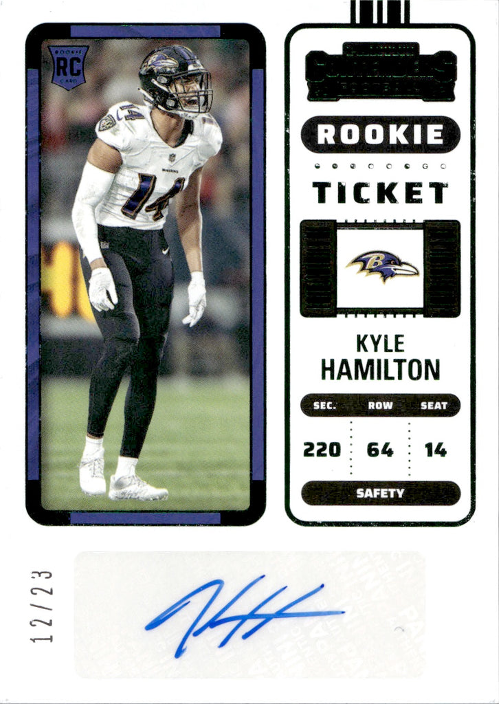 2022 Kyle Hamilton Panini Contenders GREEN ROOKIE TICKET AUTOGRAPH 12/23 AUTO RC #128 Baltimore Ravens