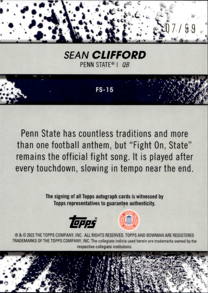 2022 Sean Clifford Topps Bowman's Best FIGHT SONG AUTO 7/99 Penn State #FS-15