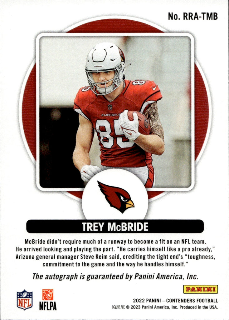 2022 Trey McBride Panini Contenders ROOKIE ROUNDUP AUTO 48/99 AUTOGRAPH #RRA-TMB Arizona Cardinals