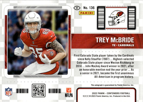 2022 Trey McBride Panini Contenders ROOKIE TICKET VARIATION AUTO AUTOGRAPH #136 Arizona Cardinals