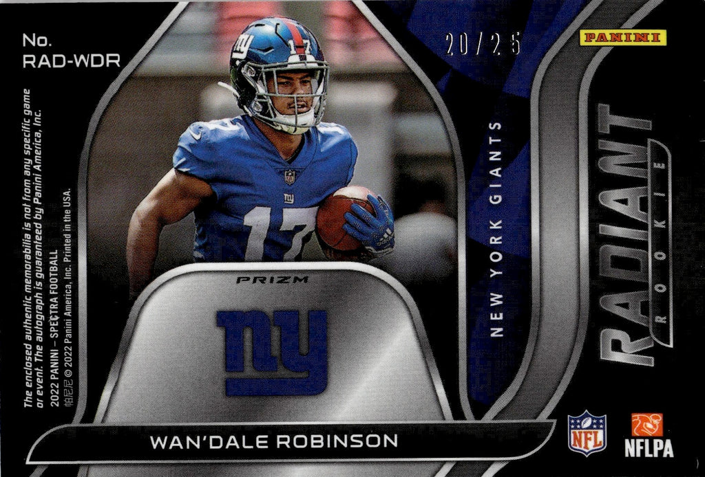 2022 Wan'Dale Robinson Panini Spectra PINK RADIANT ROOKIE JUMBO PATCH PINK INK AUTO 20/25 AUTOGRAPH RELIC RC #RAD-WDR New York Giants