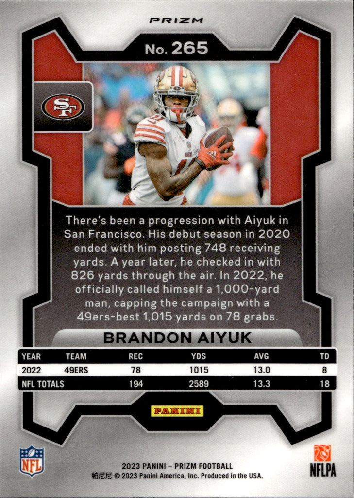 2023 Brandon Aiyuk Panini Prizm BLACK & WHITE CHECKER San Francisco 49ers #265