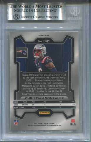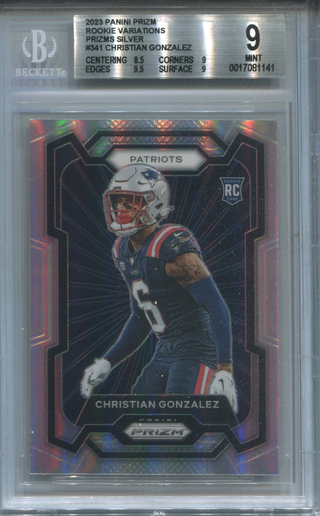 2023 Christian Gonzalez Panini Prizm HOLO SILVER ROOKIE VARIATION RC BGS 9 #341 New England Patriots 1141