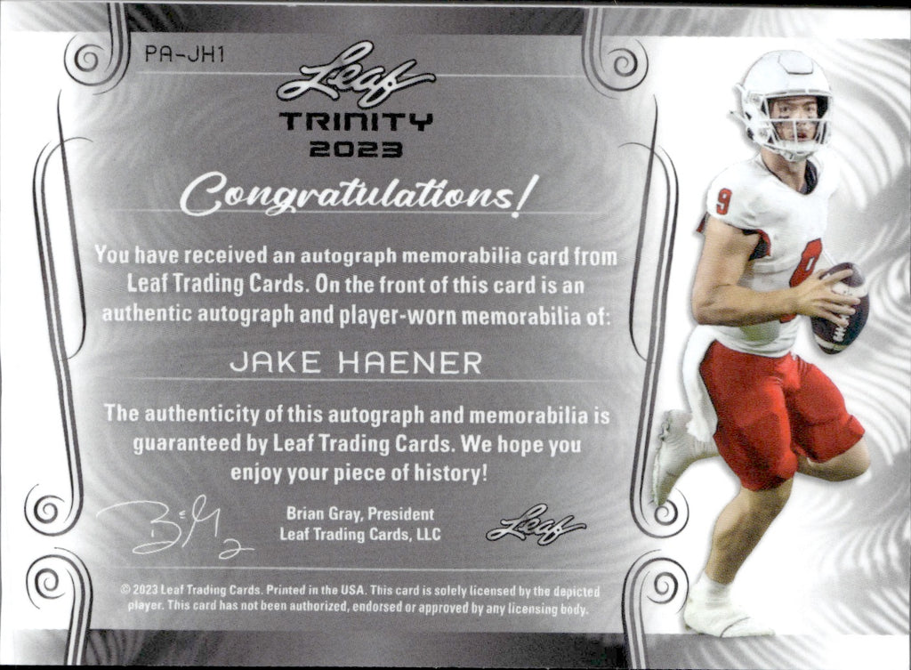 2023 Jake Haener Leaf Trinity ROOKIE JUMBO PATCH AUTO 16/50 AUTOGRAPH RELIC RC #PA-JH1 New Orleans Saints