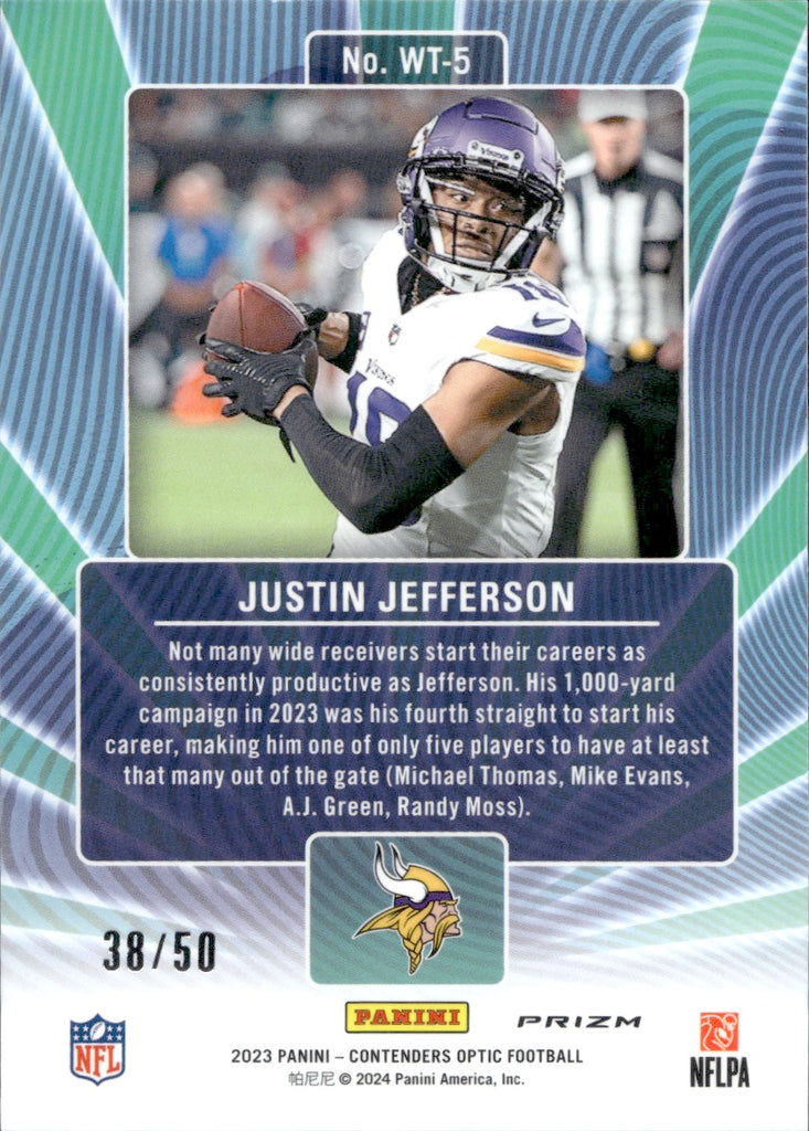2023 Justin Jefferson Donruss Optic ORANGE WINNING TICKET 38/50 #WT-5 Minnesota Vikings
