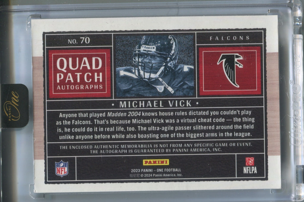 2023 Michael Vick Panini One QUAD PATCH AUTO 19/49 AUTOGRAPH RELIC #70 Atlanta Falcons