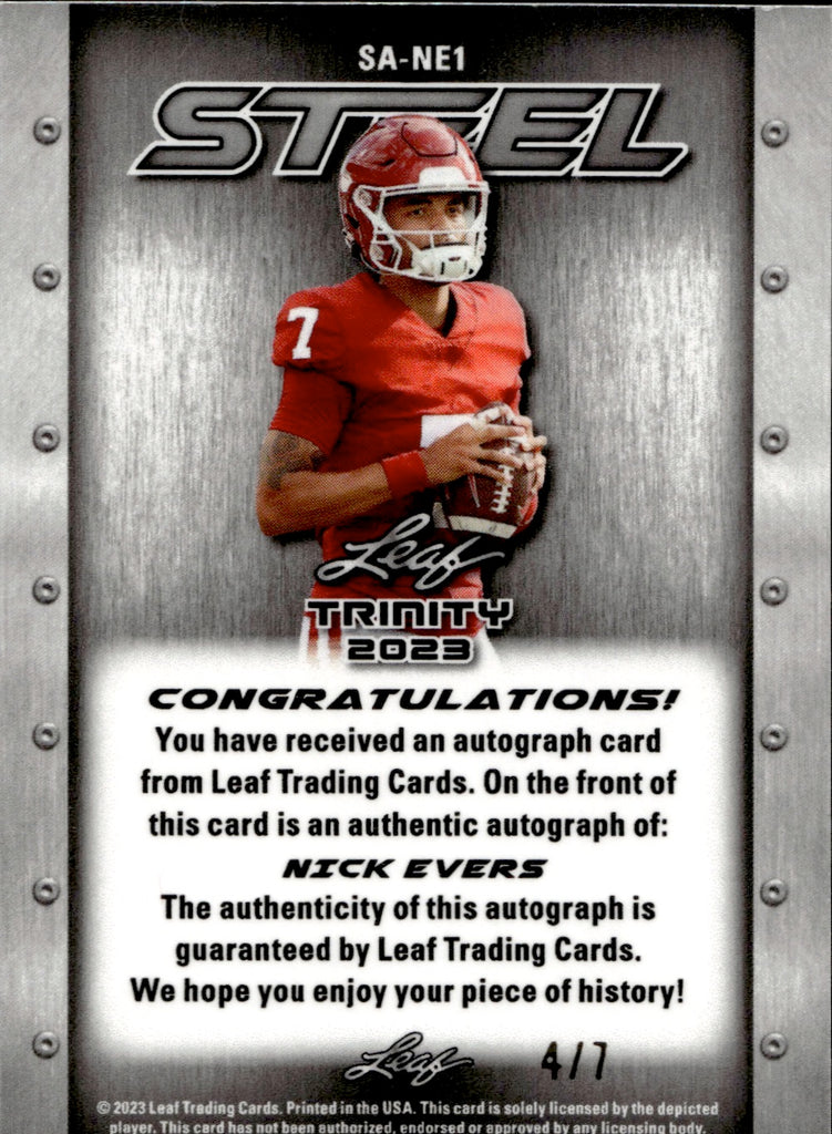2023 Nick Evers Leaf Trinity PINK TUNGSTEN STEEL ROOKIE AUTO 4/7 AUTOGRAPH #SA-NE1 UCONN Huskies