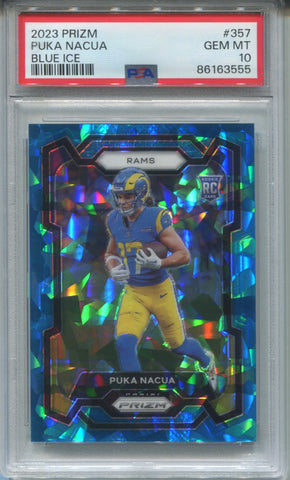 2023 Puka Nacua Panini Prizm BLUE ICE ROOKIE RC PSA 10 #357 Los Angeles Rams 3555