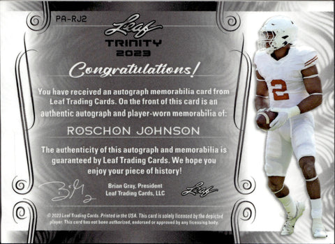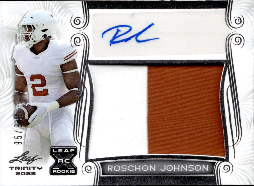 2023 Roschon Johnson Leaf Trinity ROOKIE JUMBO PATCH AUTO 95/99 AUTOGRAPH RELIC RC #PA-RJ2 Chicago Bears