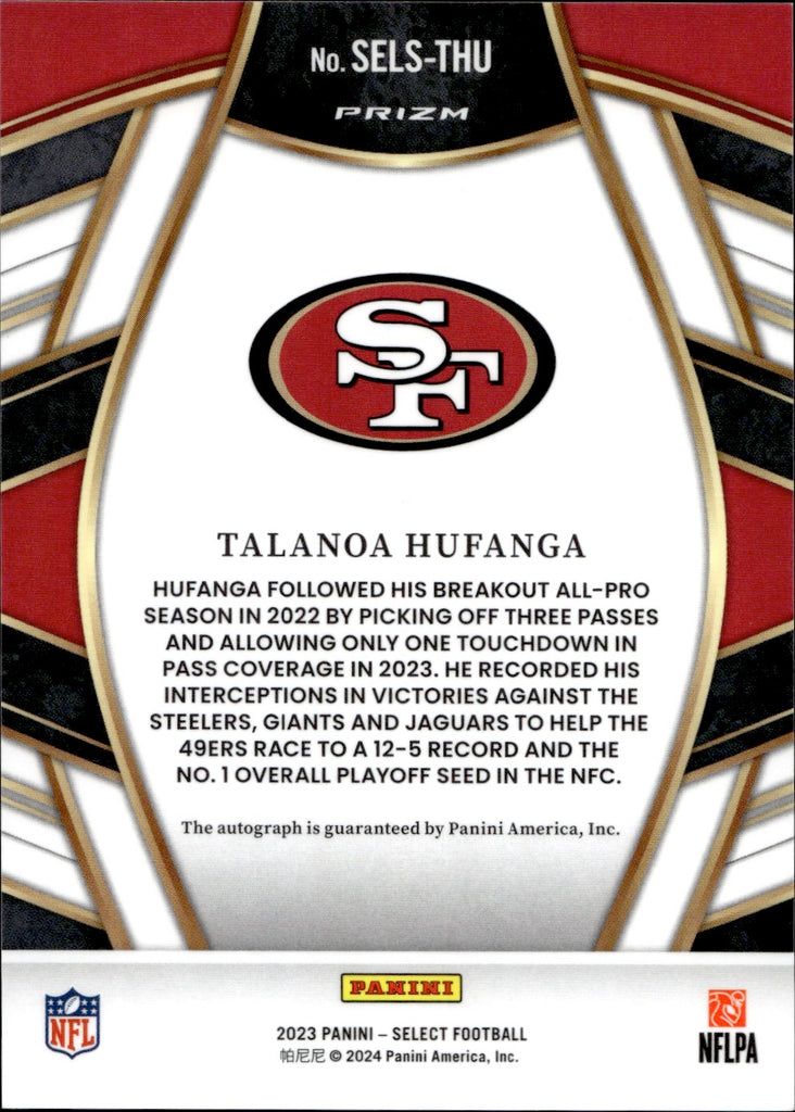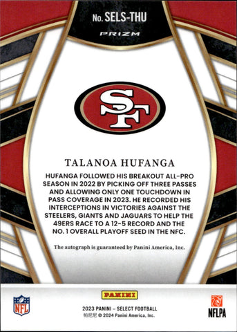 2023 Talanoa Hufanga Panini Select SELECT SIGNATURES PRIZM San Francisco 49ers #SELS-THU