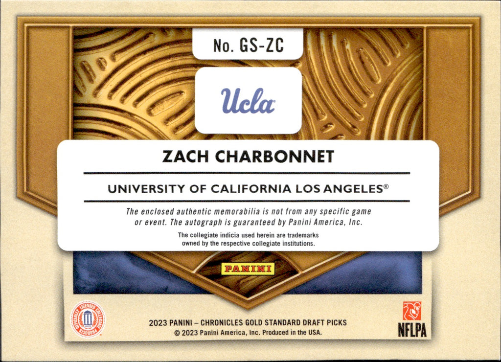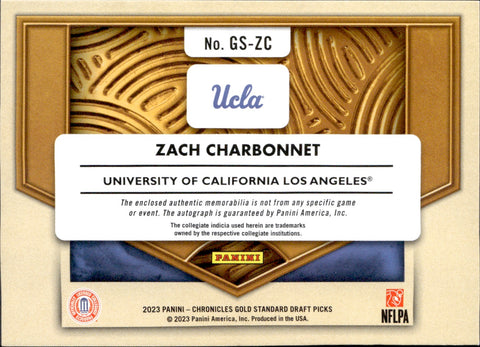 2023 Zach Charbonnet Panini Chronicles GOLD STANDARD DRAFT PICKS AUTOGRAPH ROOKIE JERSEY AUTO RC 141/199 GS-ZC UCLA Bruins Seattle Seahawks