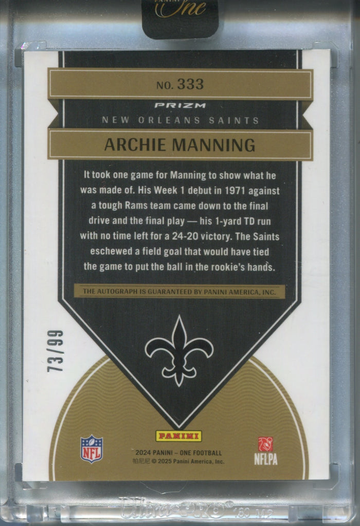 2024 Archie Manning Panini One ONCE IN A FRANCHISE AUTO 73/99 AUTOGRAPH #333 New Orleans Saints