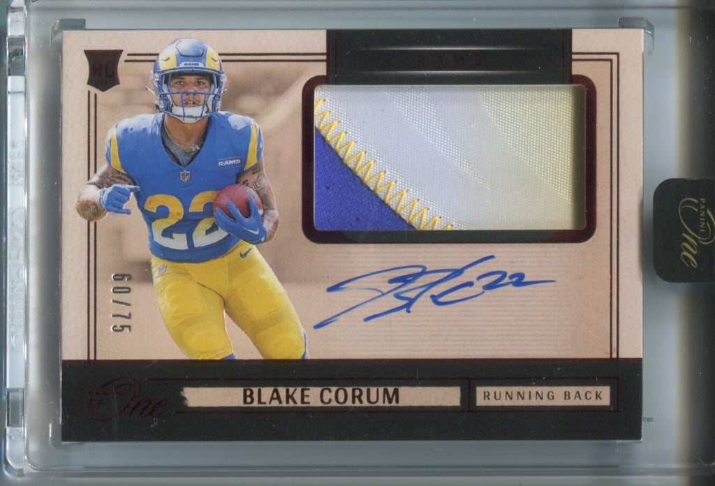 2024 Blake Corum Panini One RUBY RED ROOKIE PATCH AUTO 60/75 AUTOGRAPH RELIC #11 Los Angeles Rams
