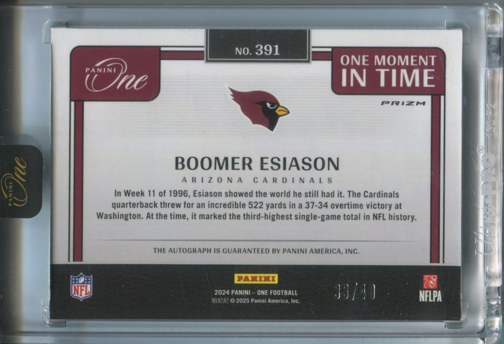 2024 Boomer Esiason Panini One GREEN ONE MOMENT IN TIME AUTO 33/40 AUTOGRAPH #391 Arizona Cardinals