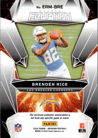 2024 Brenden Rice Panini Obsidian ROOKIE ERUPTION ROOKIE JERSEY Los Angeles Chargers #ERM-BRE