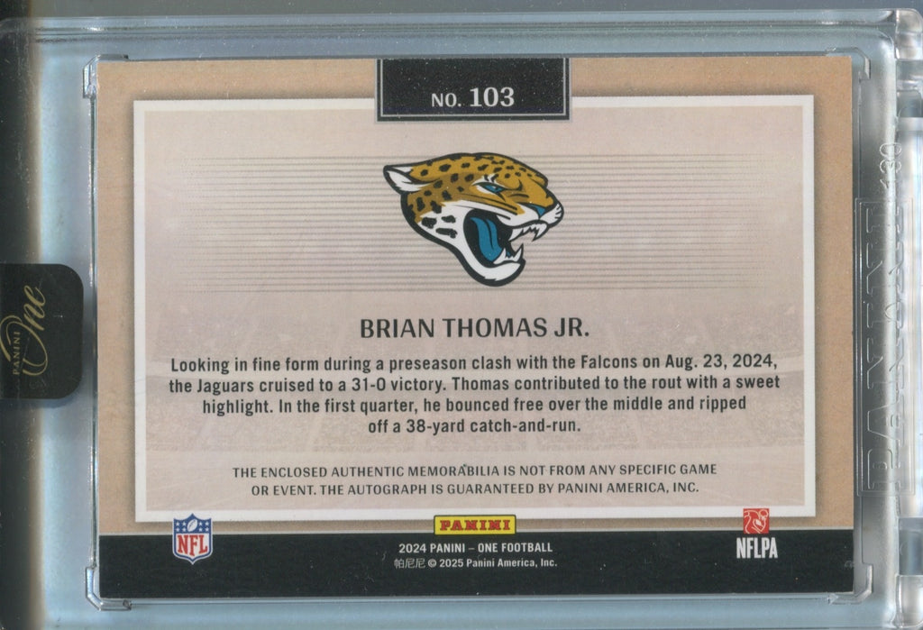 2024 Brian Thomas Jr. Panini One RED ROOKIE JUMBO PATCH AUTO 13/49 AUTOGRAPH RELIC #103 Jacksonville Jaguars