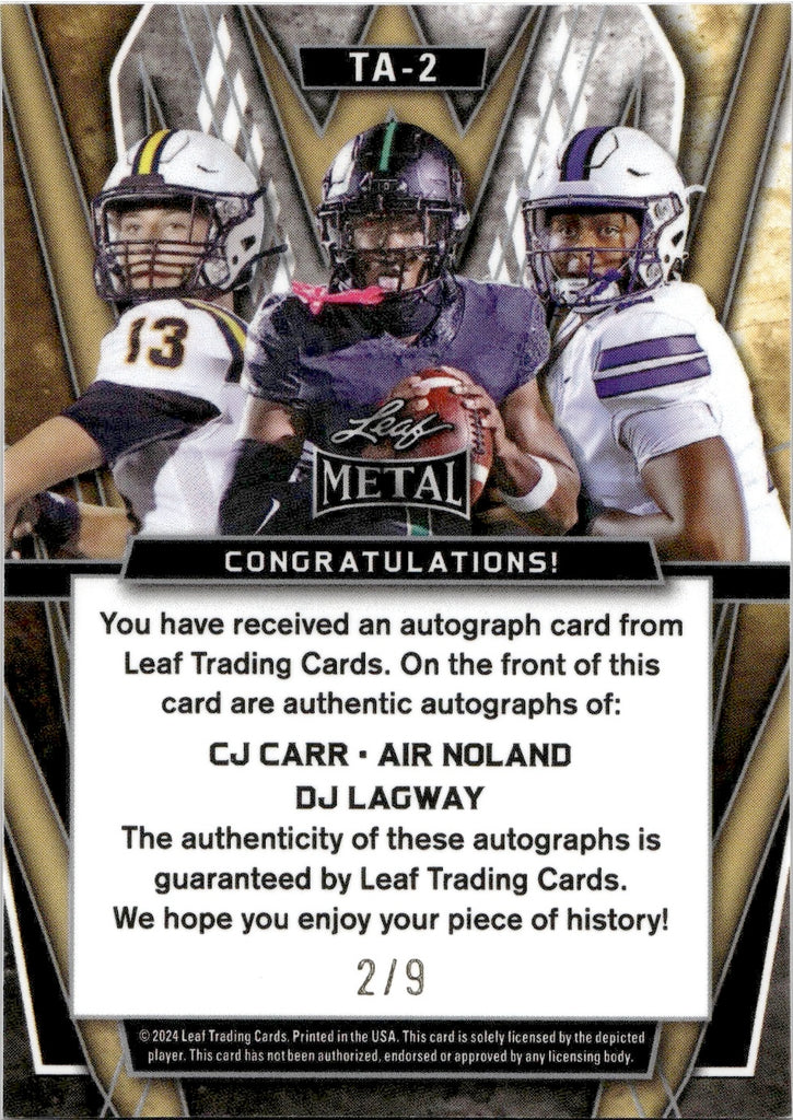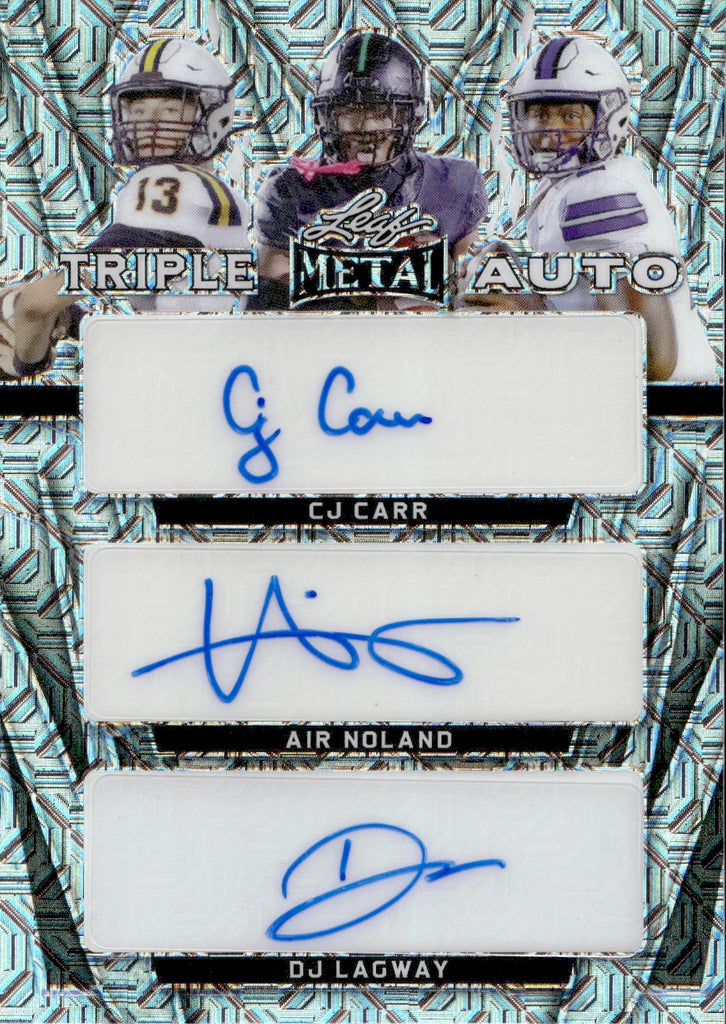 2024 CJ Carr Air Noland DJ Lagway Leaf Metal MOJO TRIPLE AUTOGRAPH ROOKIE AUTO RC 2/9 #TA-2 Notre Dame Fighting Irish South Carolina Gamecocks Florida Gators