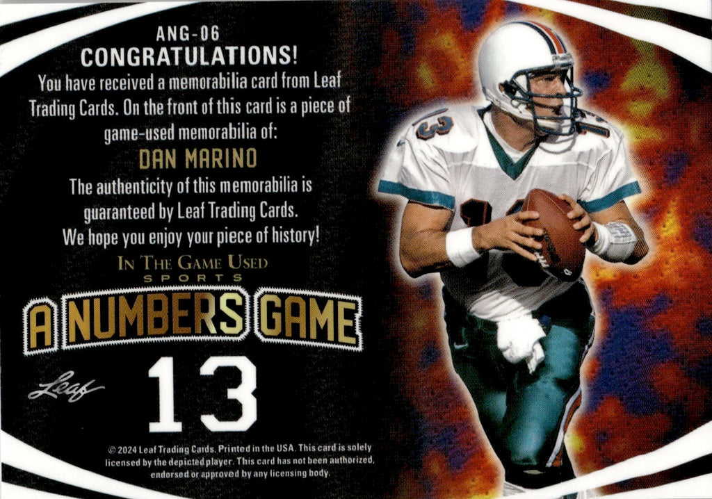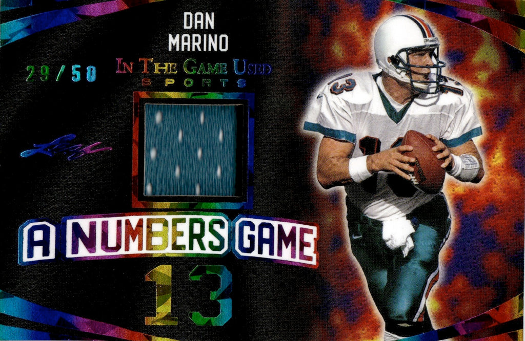 2024 Dan Marino Leaf In the Game Used RAINBOW FOIL A NUMBERS GAME JERSEY 29/50 RELIC #ANG-06 Miami Dolphins HOF