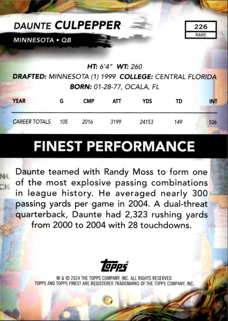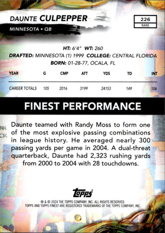 2024 Daunte Culpepper Topps Finest BLUE CHECKERBOARD REFRACTOR 5/49 Minnesota Vikings #226
