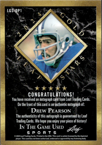 2024 Drew Pearson Leaf In the Game Used LEAF GOLD STARS PINK AUTOGRAPH AUTO 4/9 #LGS-DP1 Dallas Cowboys