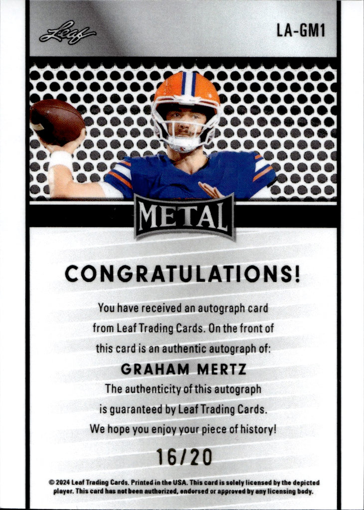 2024 Graham Mertz Leaf Metal BLUE SHIMMER 16/20 Florida Gators #LA-GM1