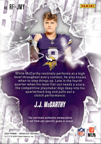 2024 J.J. McCarthy Panini Absolute ROOKIE JERSEY RELIC RC #RF-JMY Minnesota Vikings