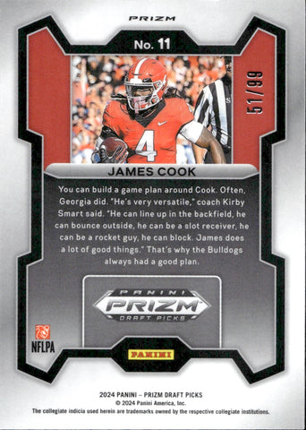 2024 James Cook Panini Prizm Draft Picks Blue Ice 51/99 #11 Buffalo Bills Georgia Bulldogs