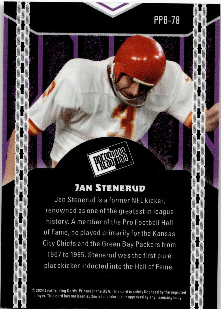 2024 Jan Stenerud Leaf Press Pass 1/1 Kansas City Chiefs #PPB-78