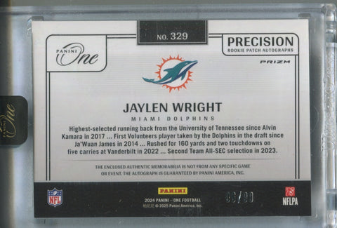 2024 Jaylen Wright Panini One PRECISION ROOKIE PATCH AUTO 06/99 AUTOGRAPH RELIC #329 Miami Dolphins