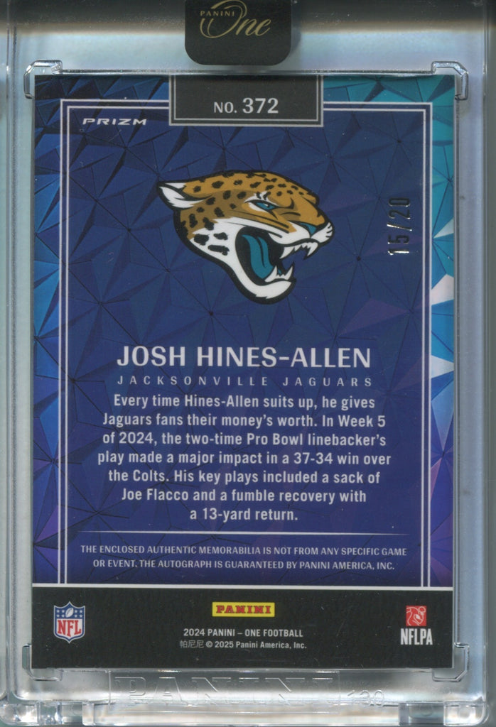 2024 Josh Hines-Allen Panini One ORANGE WONDERFUL ONES PATCH AUTO 15/20 AUTOGRAPH RELIC #372 Jacksonville Jaguars