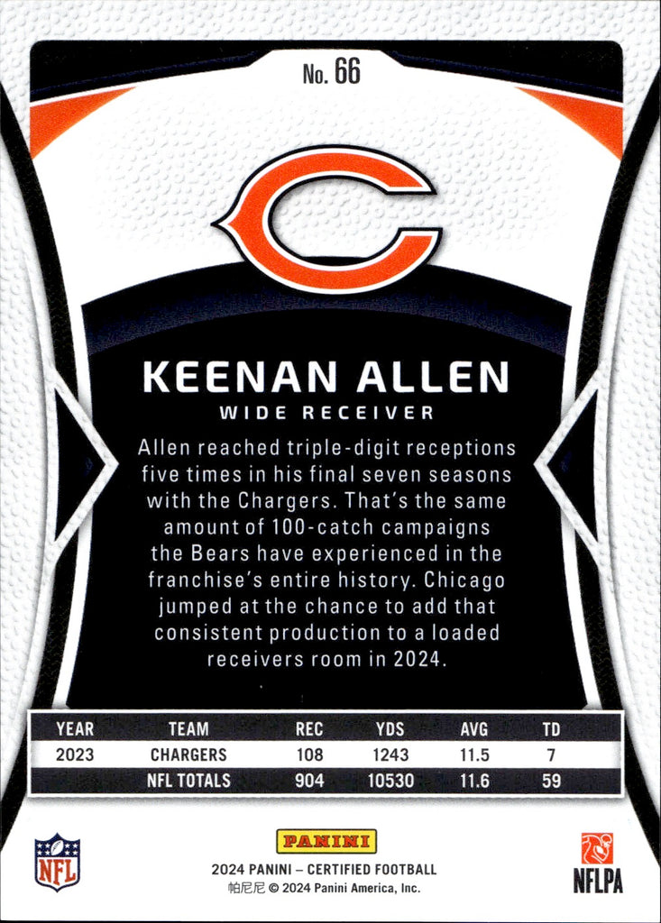 2024 Keenan Allen Panini Certified TEAL 50/50 Chicago Bears #66