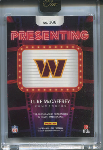 2024 Luke McCaffrey Panini One ROOKIE PRESENTING AUTO 04/10 AUTOGRAPH #166 Washington Commanders