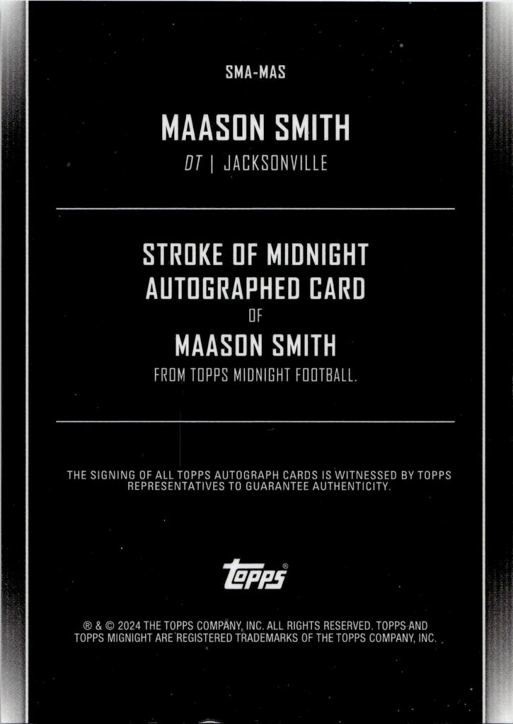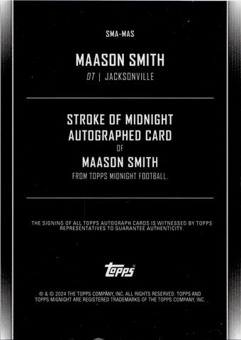 2024 Maason Smith Topps Midnight STROKE OF MIDNIGHT ROOKIE AUTO AUTOGRAPH RC #SMA-MAS Jacksonville Jaguars