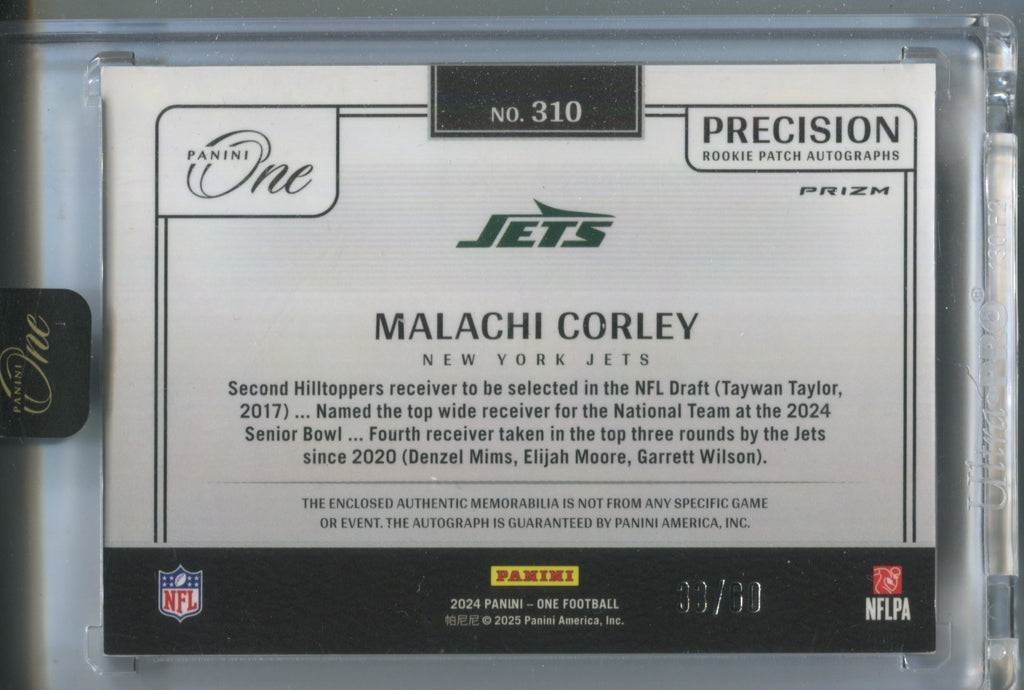 2024 Malachi Corley Panini One RED PRECISION ROOKIE JUMBO PATCH AUTO 33/60 AUTOGRAPH RELIC #310 New York Jets