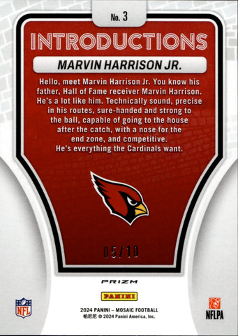 2024 Marvin Harrison Jr. Panini Mosaic GOLD INTRODUCTIONS ROOKIE 05/10 RC #3 Arizona Cardinals
