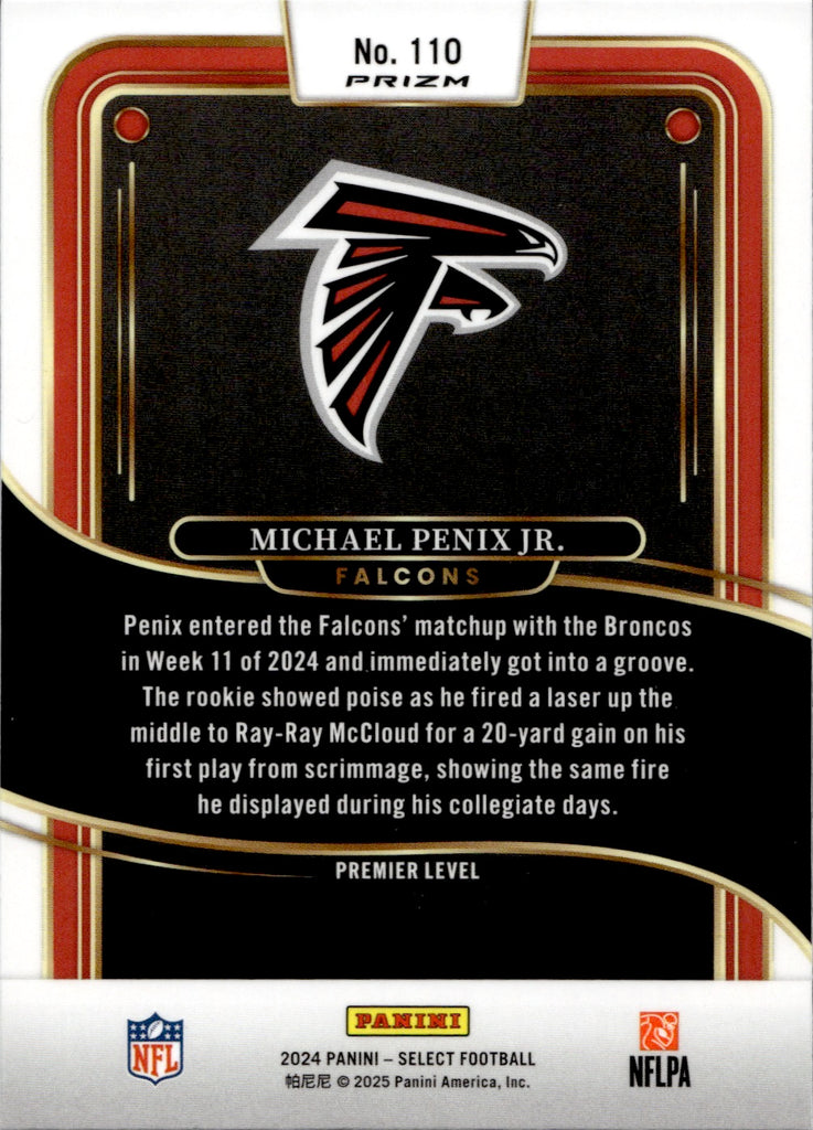 2024 Michael Penix Jr. Panini Select ZEBRA PREMIER LEVEL SP RC #110 Atlanta Falcons