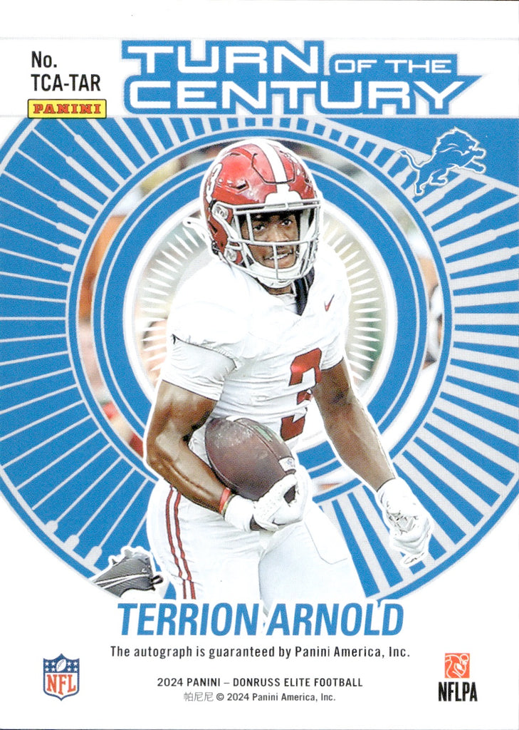 2024 Terrion Arnold Panini Donruss Elite TURN OF THE CENTURY AUTOGRAPH ROOKIE AUTO RC 83/499 #TCA-TAR Detroit Lions