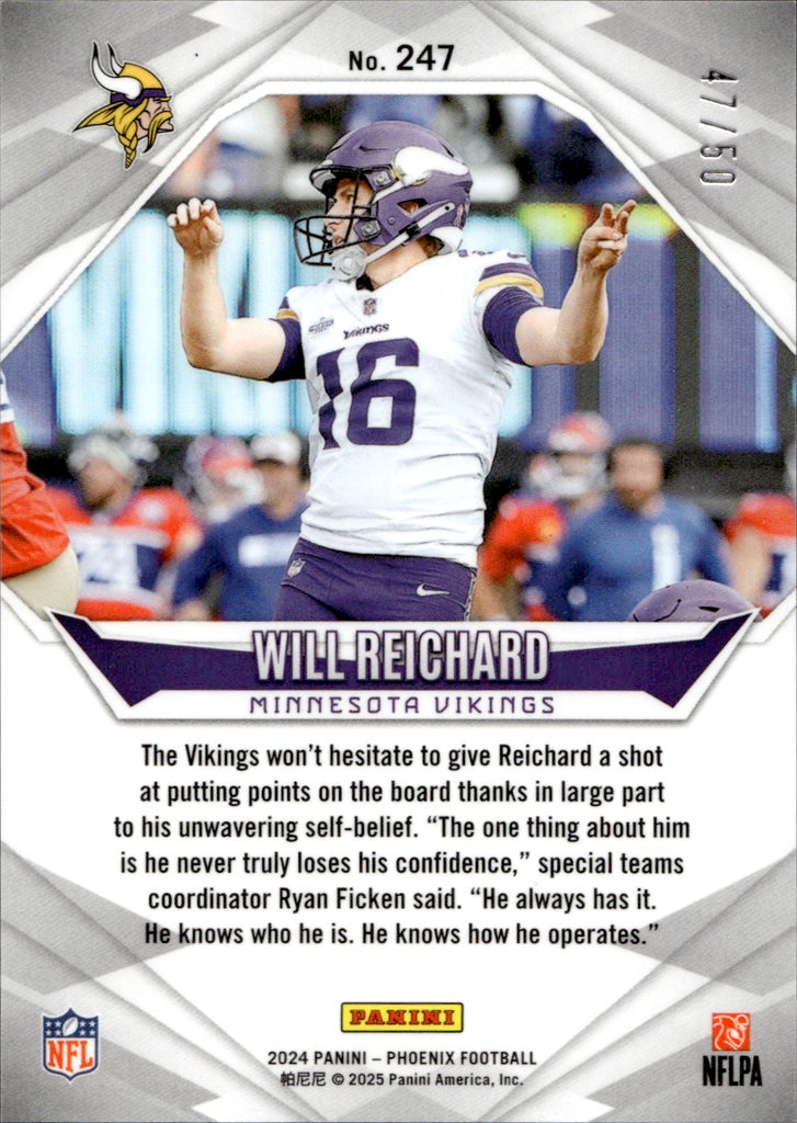2024 Will Reichard Panini Phoenix BLUE ROOKIE 47/50 RC #247 Minnesota Vikings