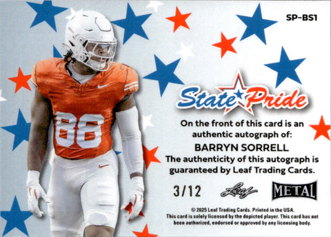 2025 Barryn Sorrell Leaf Metal STATE PRIDE BLUE LAVA ROOKIE RC 3/12 #SP-BS1 Texas Longhorns Green Bay Packers