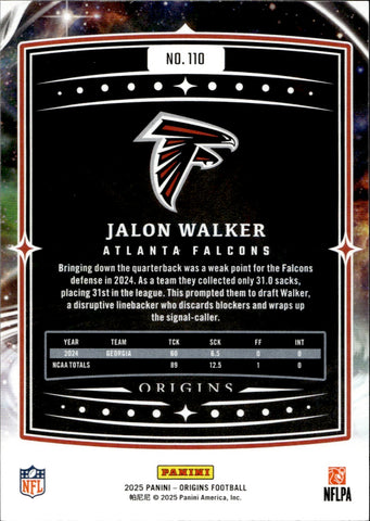 2025 Jalon Walker Panini Origins ROOKIE 05/75 RC #110 Atlanta Falcons