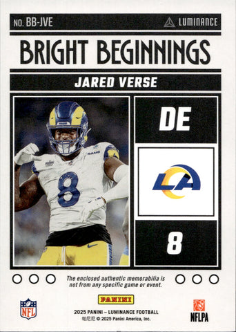 2025 Jared Verse Panini Luminance BRIGHT BEGINNINGS JERSEY Los Angeles Rams #BB-JVE