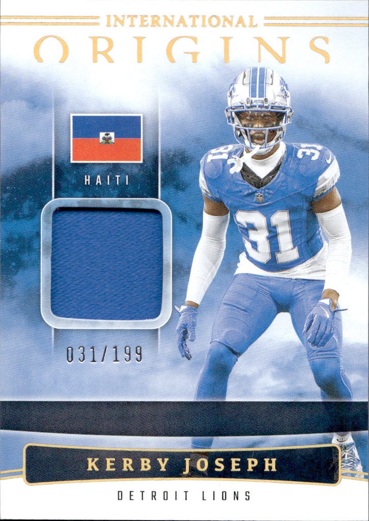 2025 Kerby Joseph Panini Origins INTERNATIONAL ORIGINS PATCH 31/199 #IO-KJH Detroit Lions *JERSEY NUMBER*