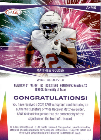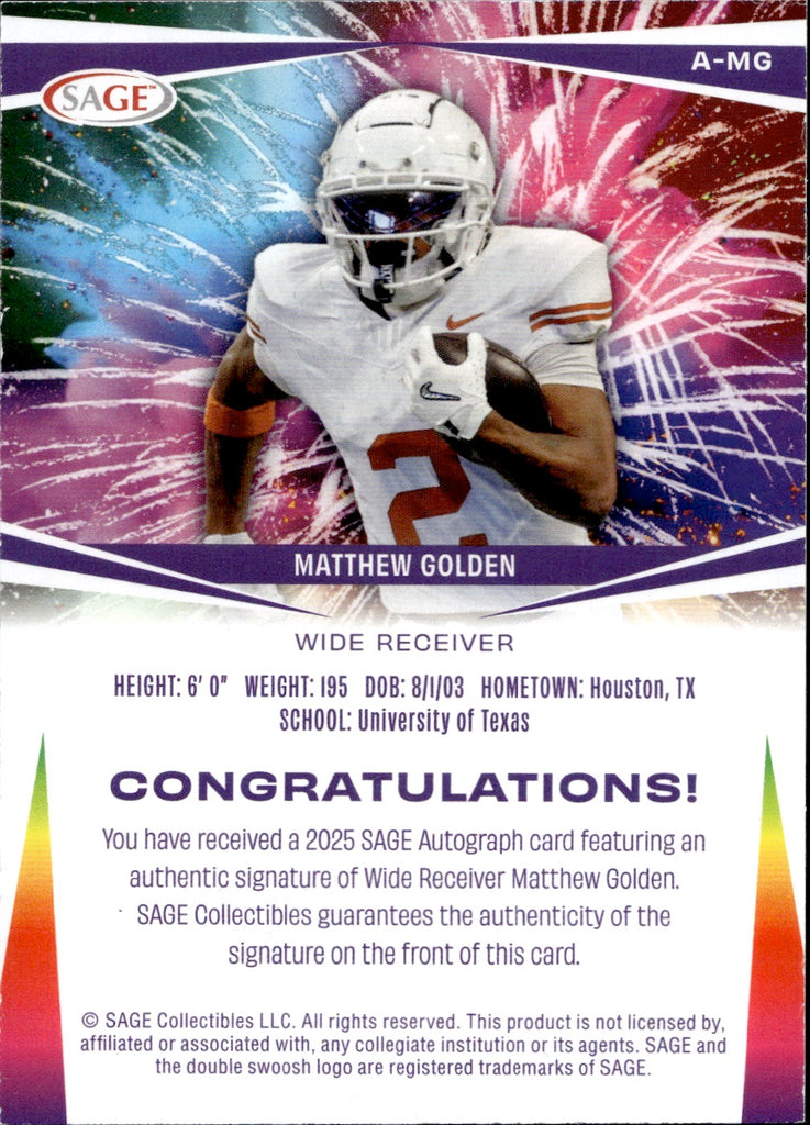 2025 Matthew Golden Sage ROOKIE AUTO Green Bay Packers #A-MG