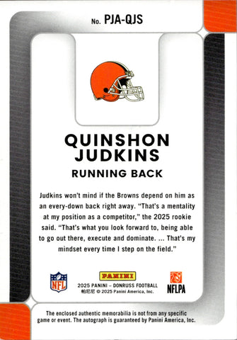 2025 Quinshon Judkins Panini Donruss ROOKIE PHENOM JERSEY AUTO 54/99 AUTOGRAPH RC #PJA-QJS Cleveland Browns
