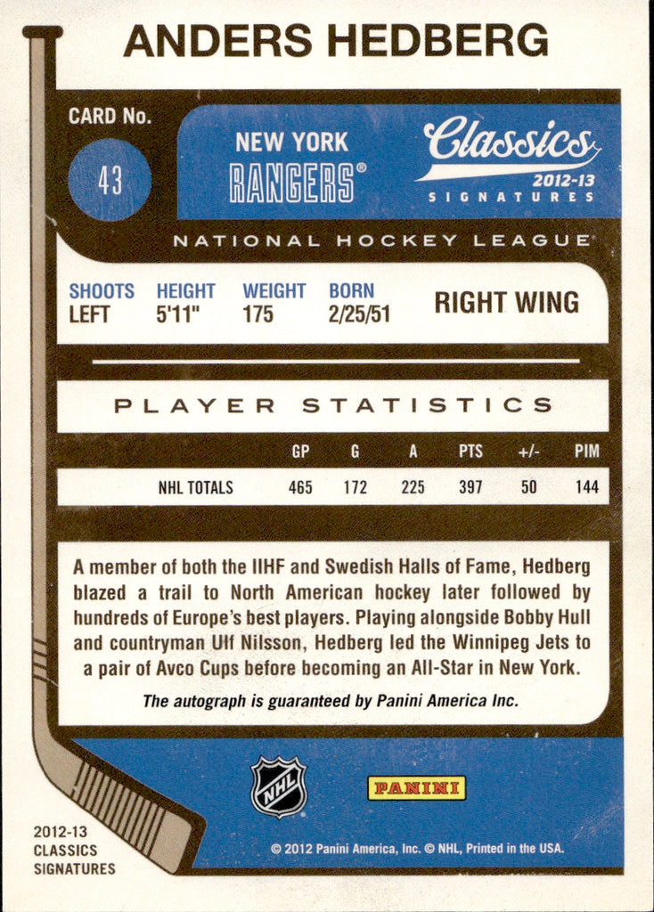 2012-13 Anders Hedberg Panini Classics Signatures AUTOGRAPH AUTO #43 New York Rangers