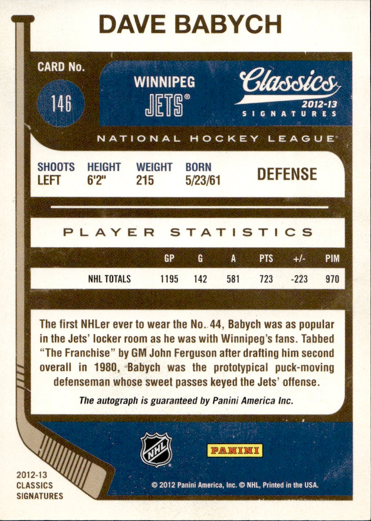 2012-13 Dave Babych Panini Classics Signatures AUTOGRAPH AUTO #146 Winnipeg Jets 1